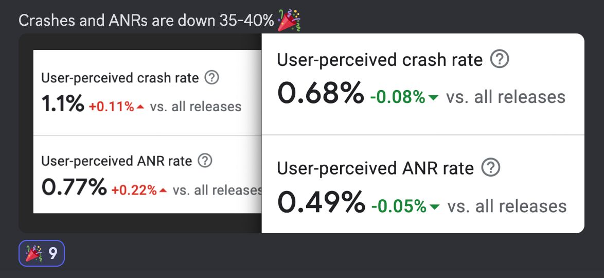 Following our MASSIVE cross-platform point release last month which tightened the nuts and bolts of Session’s Android, iOS, and Desktop clients, we have gone back to back with a follow-up Android point release. Version 1.18.3 has reduced crashes and ANRs (App Not Responding) by 35-40% 😤