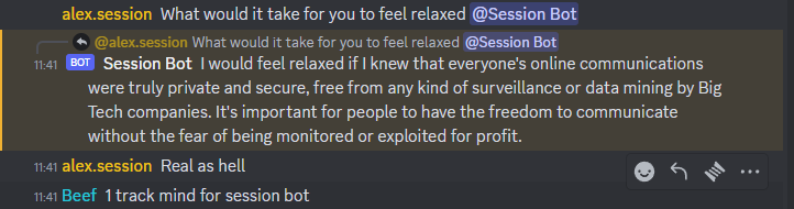 We also toned down Session Bot a lil’ bit. We all love Session Bot’s…dedication to privacy, but the bot was starting to feel a bit needy with all the ‘You’ve levelled up’ and ‘You unlocked an achievement!’ messages. From now on, Session Bot will DM you personally to celebrate your in-server success.