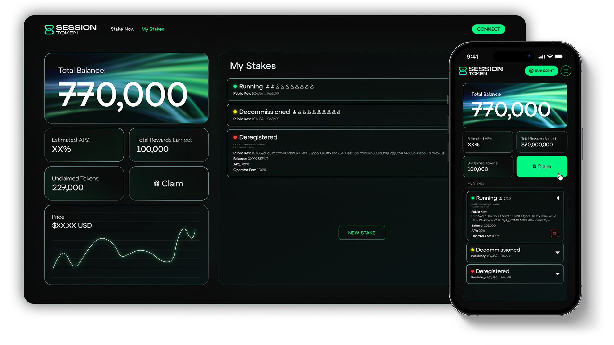 These are the frontends which users will interact with when they’re staking their Session Tokens via Metamask and other EVM-supported wallets. This will be a core part of the Session Token ecosystem, so getting the designs right is super important – staking Session Token should be simple and snappy.